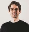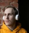 A clear plastic anatomical model of a human head, displaying internal structures such as the brain and blood vessels. It sits on a stand in a brightly lit room with blurred figures and architectural features in the background.